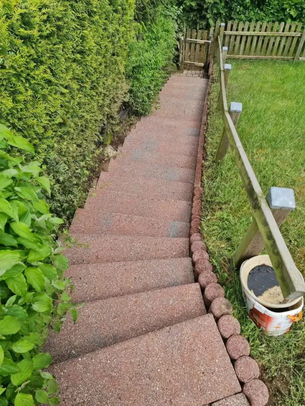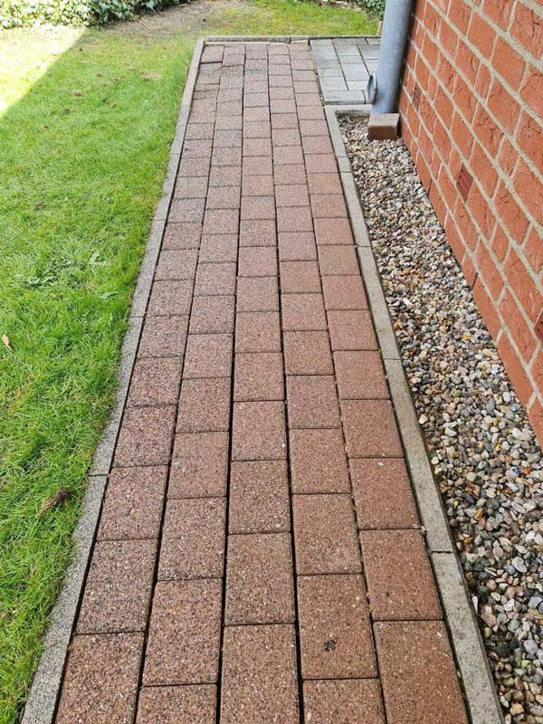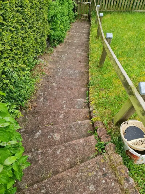 Grâce à notre système innovant à jet d’eau, nous éliminons efficacement les algues et mousses qui s’accumulent sur les allées de garage et les chemins de jardin.